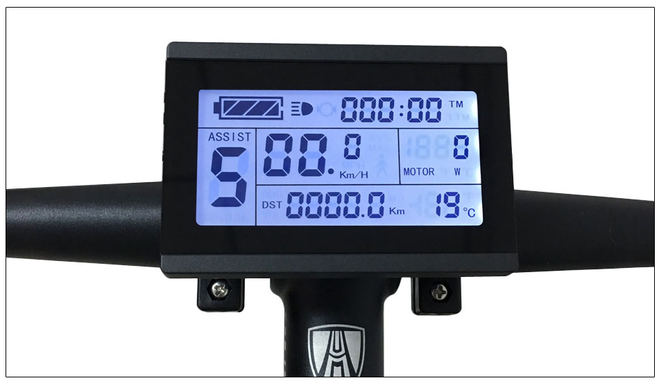 1. Data display:it shows the riding speed, a single mileage and cumulative mileage, riding time, power-assist gear, motor power and temperature, battery voltage and charge status, brake status and the used ambient temperature and other cycling parameters; |