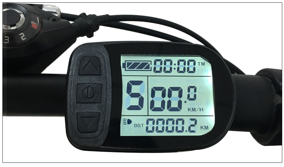 1. Data display:it shows the riding speed, a single mileage and cumulative mileage, riding time, power-assist gear, battery voltage and charge status, brake status and other cycling parameters; |