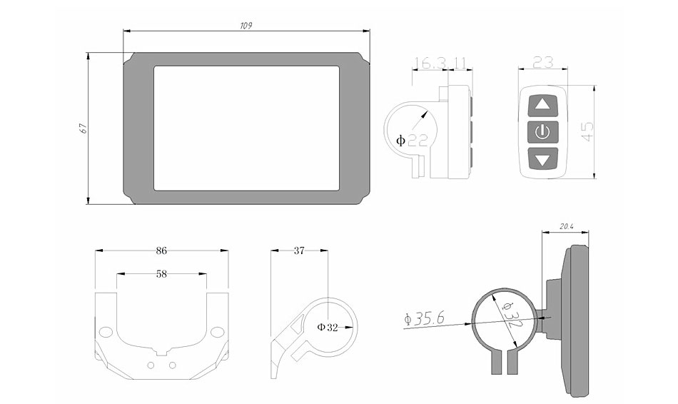 1. Data display:it shows the riding speed, a single mileage and cumulative mileage, riding time, power-assist gear, motor power and temperature, battery voltage and charge status, brake status and the used ambient temperature and other cycling parameters;
