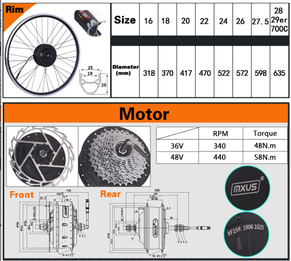 350W/500W Motor Wheel Convert Mountain Bike to Electric Assist Kit