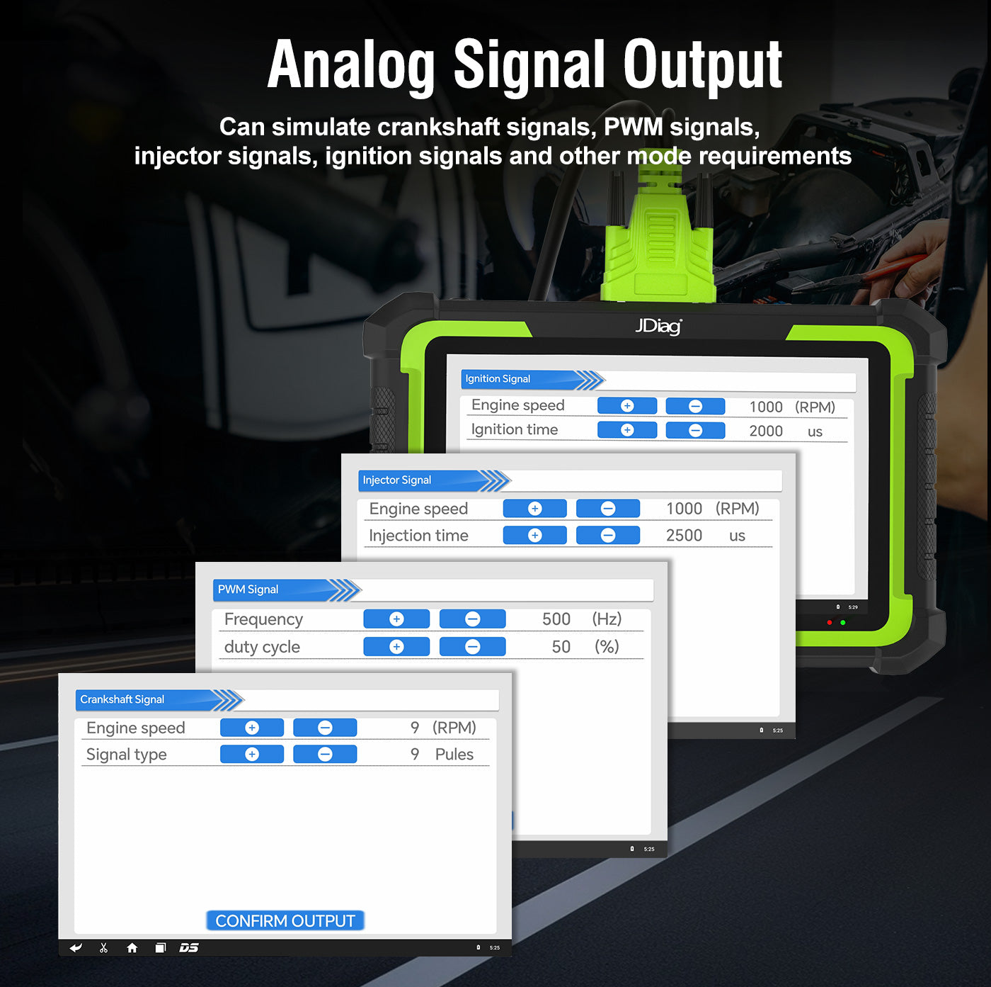 Can simulate crankshaft signals,PWM signals,injector signals, ignition signals and other mode requirements